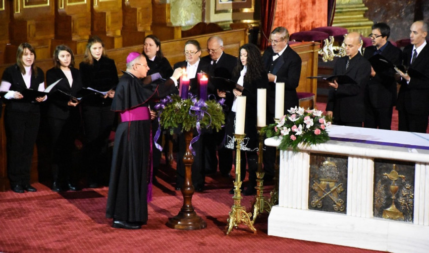 A főpásztor hangsúlyozta, a hangverseny nemcsak a kórusok egymás utáni fellépését jelenti, hanem egy lelki ráhangolódást is karácsony szent ünnepére, amikor nem mi, emberek vagyunk a főszereplők, hanem az emberré lett Jézus Krisztus. „Őt kell bevilágítaniuk a fényeknek, és ezzel a hangversennyel is ez a célunk: egy kicsivel több fényt vetíteni az újszülöttre, a Megváltóra.”
