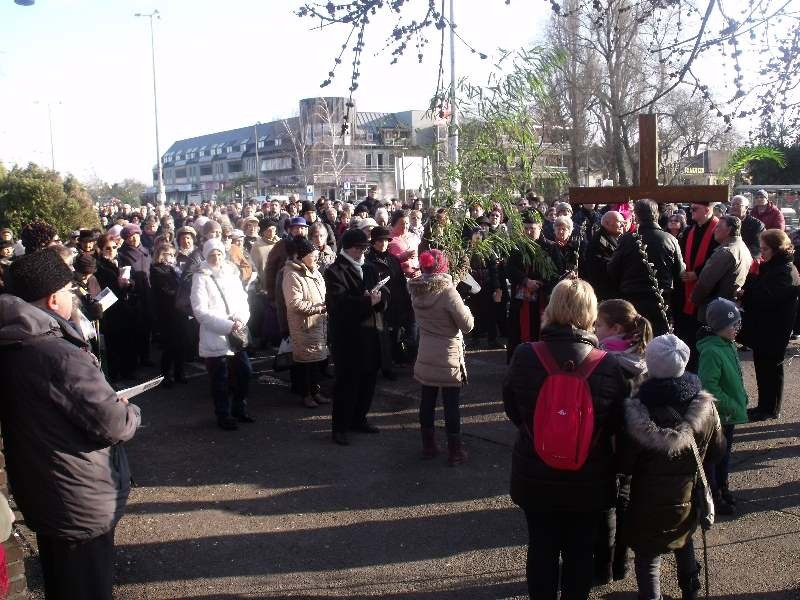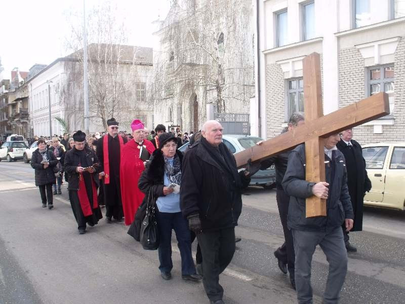 Az út vége a város ravatalozója volt, ahol Palánki Ferenc megyéspüspök szavai már előre vetítették a feltámadást, a tizenötödik állomást. A főpásztor áldása zárta a nagyhetet indító városi keresztutat, melyen közel ezer ember vett részt, különböző felekezetekből.
