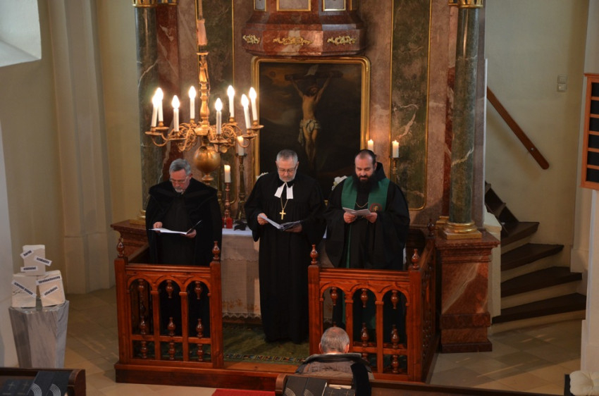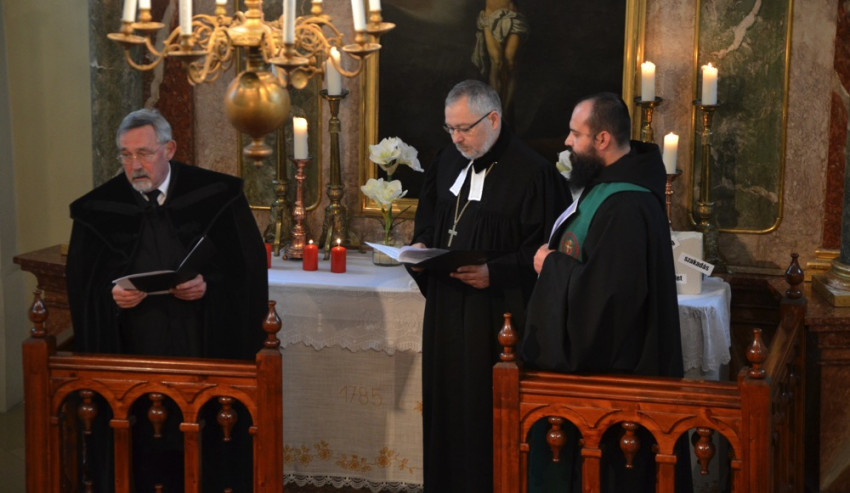Ahogyan az idei ökumenikus imahét hivatalos füzetében javasolták, a három felekezet képviselői az oltárra helyezték az egymás ellen elkövetett bűnöket jelképező szimbolikus téglákat, majd a helyükre keresztet állítottak. Végül az oltáron egyenként meggyújtották a hit, a szeretet és a remény lángját.