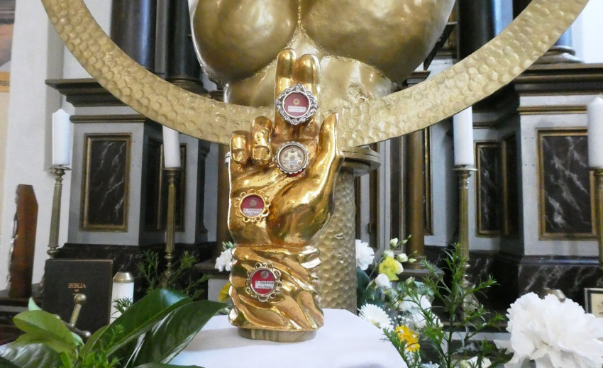 Juhász Jenő mérnök, az egyháztanács tagja a szentmise előtt elmondta: a csontereklyéket őrző tartót a hozzá hasonlító Szent Jobb-szimbólumra helyezték ki, amely Kassán az 1938-tól 1945-ig felállított országzászlórúd tetejét díszítette, és amely eddig ismeretlen körülmények között került Makrancra. Ott egy kémény mögé rejtették az egyik nyári konyha padlásán. 2001-ben véletlenül találtak rá a ház tulajdonosai. 2012-ben született ötlet, hogy a Szent Jobb-szimbólumot ereklyehordozóvá alakítsák, amit Szent István király ünnepén vállra véve, körmenetben lehet hordozni.