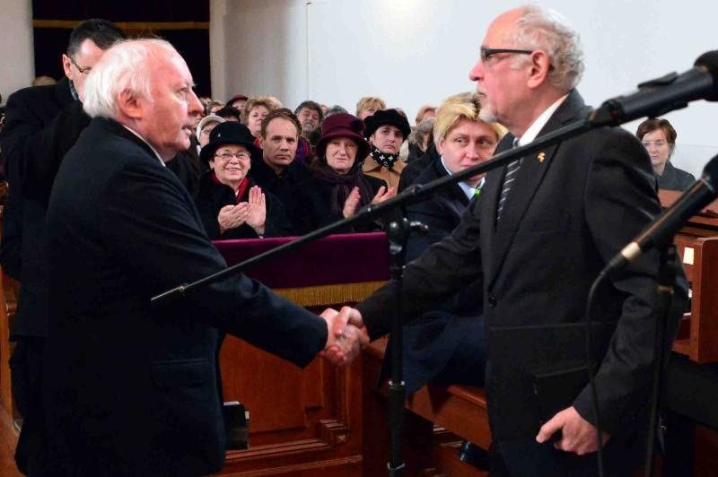 Ágh István a kitüntetést Jánosi Zoltántól, a Kölcsey Társaság elnökétől vehette át.