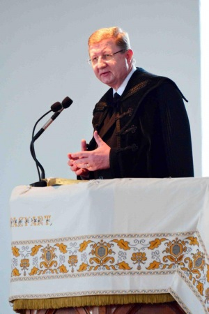 Fekete Károly, a Tiszántúli Református Egyházkerület püspöke beszédében kiemelte, hogy Isten tudja és látja, hogy mikor veszteglünk, mikor irányítja más az életünket. Hozzátette: „Gyöngeségünkben az Úr Szentlelke siet a megsegítésünkre, és három zárat akar felpattintani bennünk. Az első a szolgalelkűség börtönzára, amely azt mutatja, hogy irányítani lehet bennünket, elvehető az önállóságunk, pedig ha a szolgaság érzését felváltja a fiúságé, akkor érezhetjük igazán, hogy Istenhez tartozunk. A másik a szájzár, amely azt akarja elhitetni velünk, hogy nem érdemes és nincs is kihez szólni, pedig boldog ember az, aki nem zárul önmagába, hanem megcélozza Istent a szavával és tovább tudja adni szeretete hangjait.”