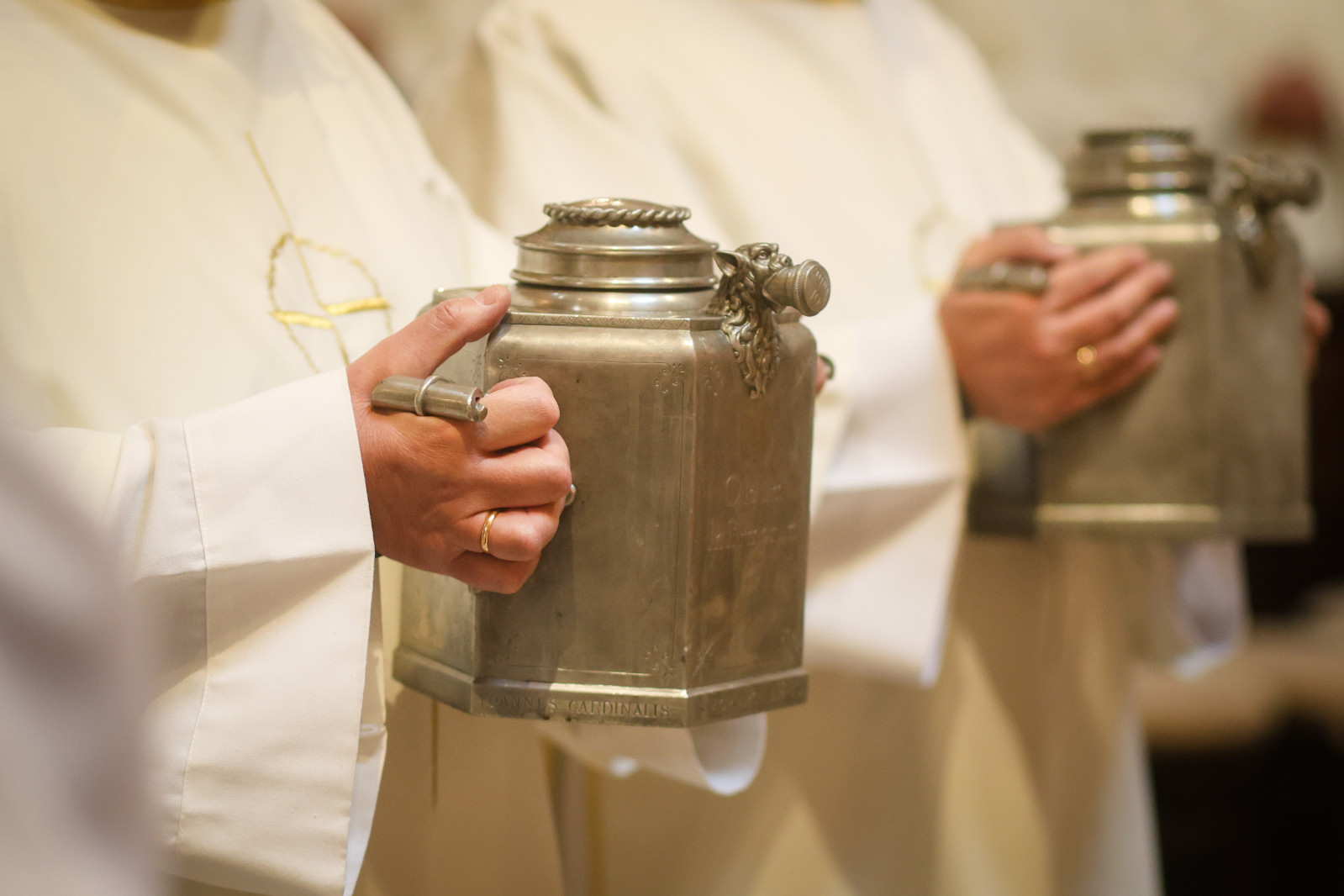 Mielőtt nagycsütörtök este megkezdődne a szent három nap liturgiája, az egyházmegyék ordináriusai összegyűjtik papjaikat és a plébániák képviselőit, hogy Isten áldását kérjék a szentségek kiszolgáltatásakor használt szent olajokra. Nagycsütörtök már az ókori római egyház életében is sűrű nap volt. Ekkor nyerték el a kiengesztelődést a bűnbánattartók, és ekkor fogadták vissza őket az egyház közösségébe, ahol már együtt ünnepelték meg az utolsó vacsora emlékezetét.