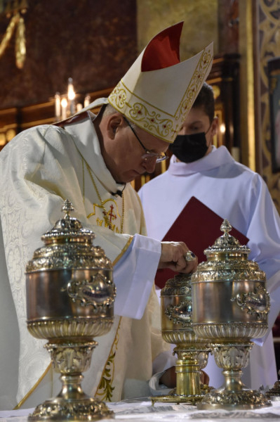 Kovács Gergely gyulafehérvári érsek nagycsütörtök délelőttjén homíliájában hangsúlyozta, hogy Jézus apostolaira bízta művének a folytatását, Jézus ezen küldetése pedig az idők végezetéig szól, ez határozza meg a papság lényegét. Emlékeztetett, hogy az Úr a szolgálatra kente fel a papokat, ez a mérhetetlen ajándék felelősséggel is jár.
