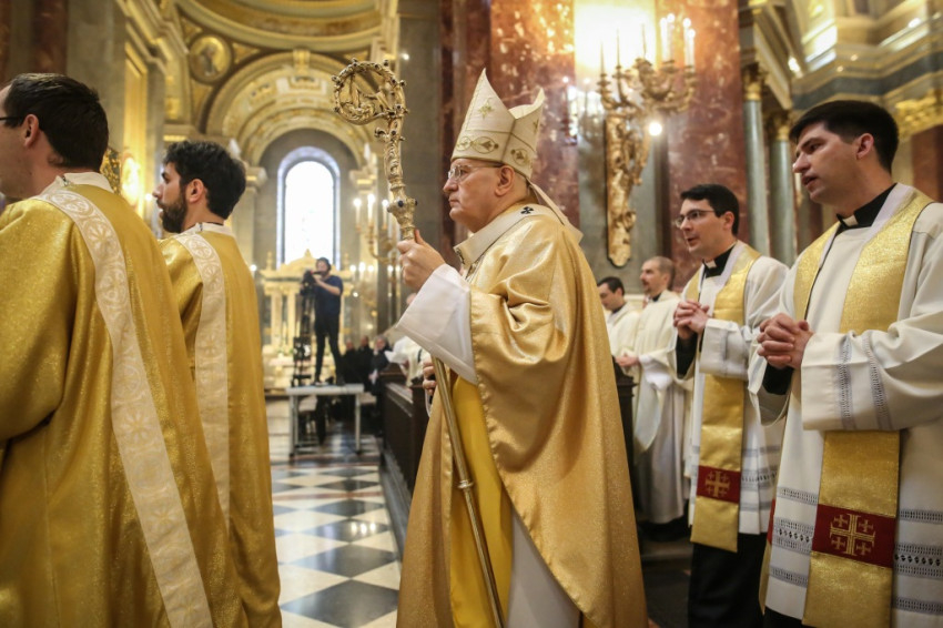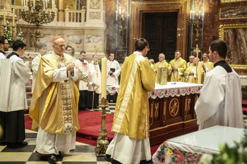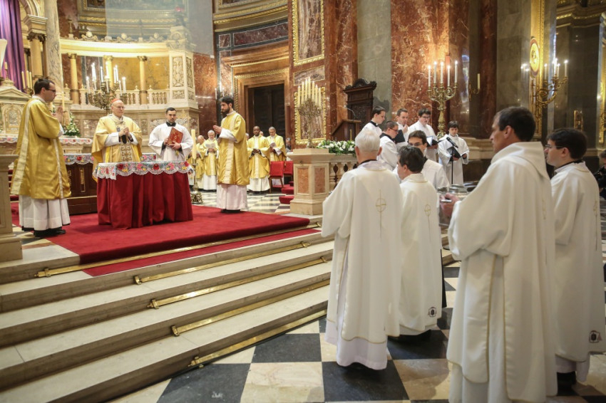 Aki tudja imádni az Oltáriszentséget, annak megnyílik a lelke a papi hivatás elfogadására is. Igaz ez azokra, akik most jelentkeznek a szolgálatra, de igaz ránk is, akiknek újra és újra fel kell szítanunk magunkban a kegyelmet, amelyet a papság kézfeltétele által kaptunk. Kérjük Krisztust, aki Urunk és Mesterünk, hogy erősítsen meg minket a szent szolgálatban, és támasszon új papi hivatásokat egyházmegyénk számára! – mondta a bíboros.