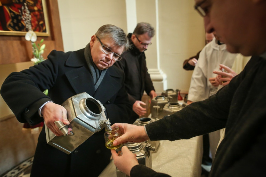 Az áldás után a diakónusok, a papság, a püspökök és a főpásztor ünnepélyes körmenetben vitte a megáldott és megszentelt olajokat, melyeket ezt követően az egyes plébániák képviselői hazavihettek templomaikba.