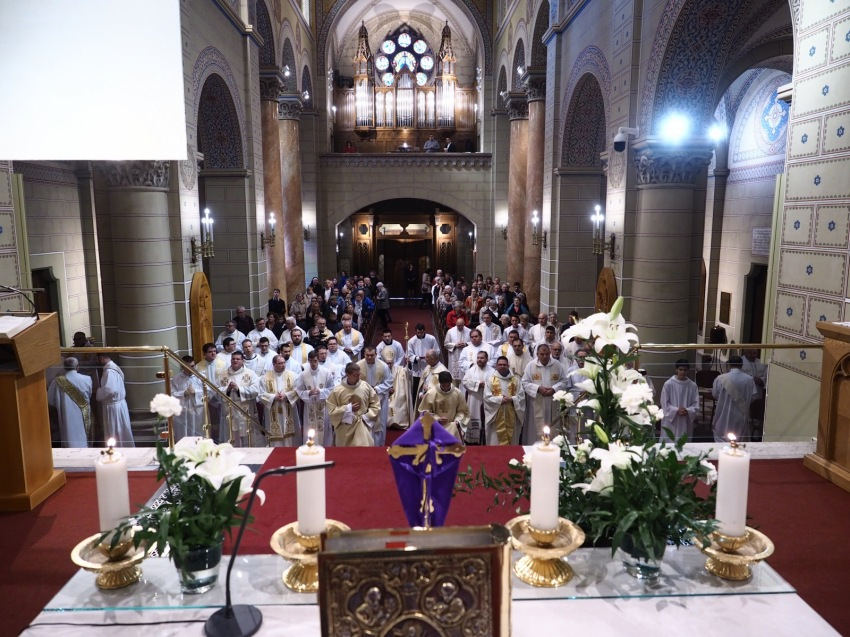 Erdő Péter bíboros, prímás Michael August Blume SVD érsekkel, apostoli nunciussal, az Esztergom-Budapesti Főegyházmegye papságával és szerzetes papjaival együtt mutatta be a szentmisét, amelyen részt vettek a főegyházmegye diakónusai és számos hívő is.
