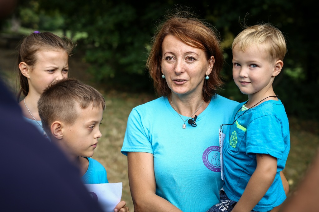 A kápolna mellett már sokan várakoznak, az összkép a játszótérrel és a sok gyerekkel leginkább egy majális hangulatát idézi. Rigóné Tomka Lea koordinátor nyilatkozik éppen egy forgatócsoportnak. Arról beszél, hogy ez a szakasz öt év óta augusztus utolsó szombatján minden alkalommal körülbelül ötven családot mozgat meg. Nem kirándulás, bár ahhoz nagyon hasonló: gyerekek zarándoklata, énekekkel, imával, pecsételős és mesélős állomásokkal.