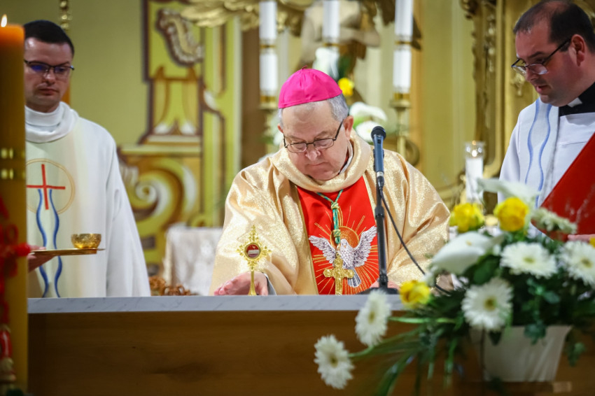 A szentbeszédet követően Bábel Balázs megbérmálta az ötven fiatalt, majd következett a misézőoltár konszekrálása. Szent Asztrik érsek ereklyéjének elhelyezése után az érsek krizmával szentelte fel az oltárt, majd a tömjénfüst jelezte az áldozat imájának égbe szállását. Az oltár megterítése után pedig folytatódott az ünnepi szentmise.