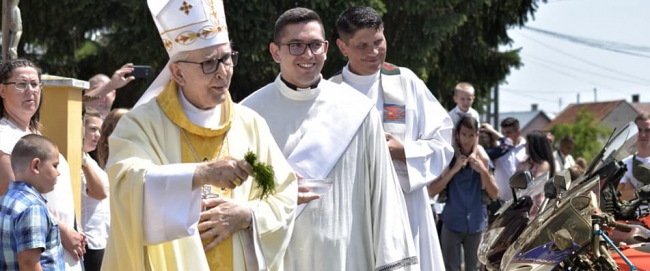 A szertartás látványos és hangos mozzanata volt a motorosok és járműveik megáldása.
