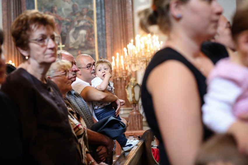 A szentélyben a papság, diakónusok és akolitusok sokasága vette körül Beer Miklós megyéspüspököt és Varga Lajos segédpüspököt. A jobb oldali kereszthajóban ültek a szentelésre érkezett hallássérült hívek. Első ízben közvetítette itt számukra jeltolmács az elhangzó énekeket, imákat, beszédeket. Az irgalom, megbocsátás, jóság, békesség, szentség elvont fogalmait ez a különleges, gesztusainkra, mimikára, testbeszédre alapuló nyelv közvetítette. A nagyothalló és siket testvérek jelenléte nem volt véletlen. Közösségi jelenlétük a Váci Egyházmegyében induló hallássérült pasztoráció reményteljes kezdete.