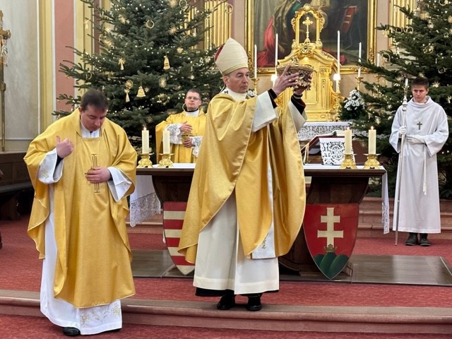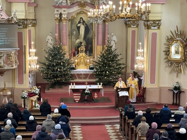 Engesztelni a békéért, engesztelni az istenes életért, népünkért, nemzetünkért, a keresztény kultúráért... De nem úgy tekintünk az engesztelésre mint végső eszközre, hogy nem tudunk már mit tenni, akkor tegyük ezt, hanem mint életünk szerves részére, mert Krisztus adott erre példát az önkiüresítésben, az engedelmességben – emelte ki prédikációjában a főpásztor, majd e szavakkal buzdította a jelen lévő híveket: „Kérjük Árpád-házi Szent Margit közbenjárását plébániai közösségünkért, az itt ünneplőkért, azokért a családtagokért, akik most nem tudnak itt lenni, hogy Krisztushoz ragaszkodva örömmel tudjunk majd belépni a menyegzőre, amire meghívott bennünket az Úr. Minden szentmise ezt a menyegzői ünnepet adja számunkra. Itt vagyunk, mert virrasztunk, itt vagyunk, mert éberek vagyunk, mert engesztelni akarunk, mert a teljes életet akarjuk magunkhoz venni az öröm ünneplésében.”