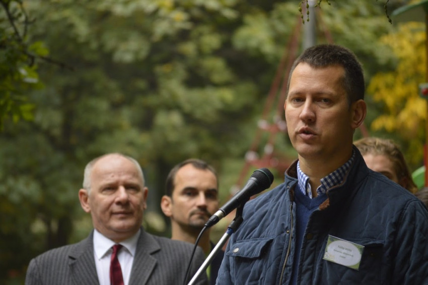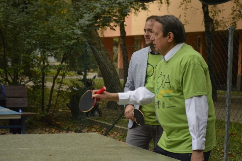 Egy budapesti óriás lakótelep közepén vagyunk egy játszótéren, közintézményekkel körülvéve – dicsérte a helyszínválasztást Bogárdi Szabó István püspök, a Magyarországi Református Egyház Zsinatának lelkészi elnöke. – Kis sziget ez a játszótér a tízemeletesek között, a Szentendrei út forgalmától néhány méterre.