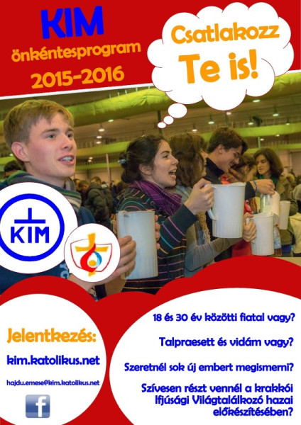 Jelentkezni 2015. április 26-áig folyamatosan Hajdu Emesénél lehet a hajdu.emese@kim.katolikus.net címre küldött, fényképpel kiegészített „önéletrajzzal”.