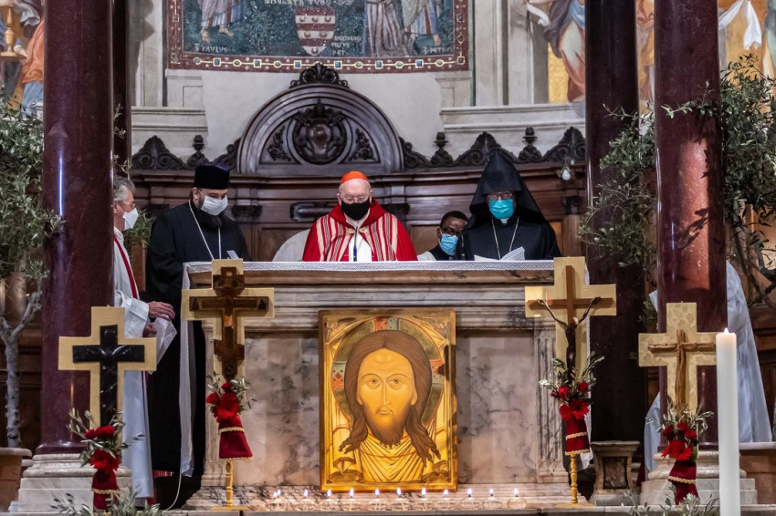 Ferenc pápa példáját követve, aki Irakban ellátogatott az üldözött keresztényekhez, a Santa Maria in Trastevere-bazilikában hétfőn este fohászkodtak mindazokért, akik a vallási megkülönböztetés, a vallásszabadság hiánya, a terrorista gyűlölet miatt szenvednek a hitükért, akik életük kockáztatásával gyakorolják a felebaráti szeretetet: a Közel-Kelet és egész Ázsia, Észak- és Dél-Amerika, Afrika és Európa vértanúiért, köztük a virágvasárnapi indonéziai öngyilkos merénylet húsz sebesültjéért.