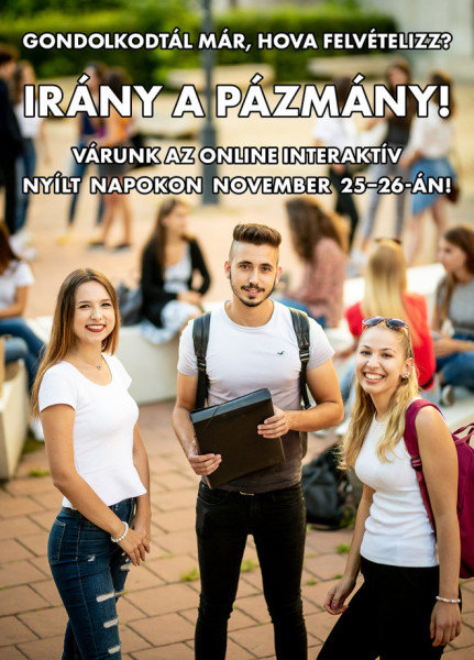 A november 25-26-i „Irány a Pázmány! Online Interaktív Nyílt Napok a BTK-n” eseményre nem kötelező előre regisztrálni, de az a látogató, aki ezt megteszi, középiskolája számára igazolhatja, hogy a virtuális nyílt napon kínált szakok valamelyikéről tájékozódott.