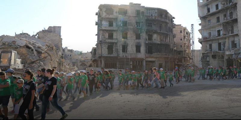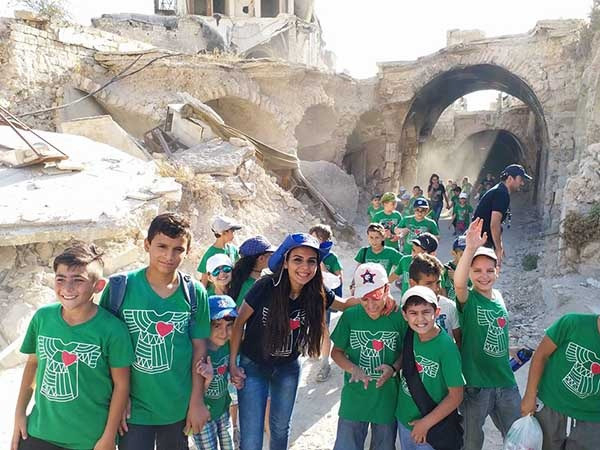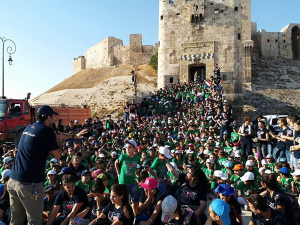 Az aleppói gyerekek különösen örültek a kirándulásnak, amelyen július 5-én vehettek részt. A mintegy 400 oratorista Pier Jabloyan szalézi atya vezetésével a város szélén található oratóriumból a harcok nyomát viselő utcákon át a város leghíresebb műemlékéhez, a citadellához sétált, amely egy dombon található a rommá lőtt város központjában.