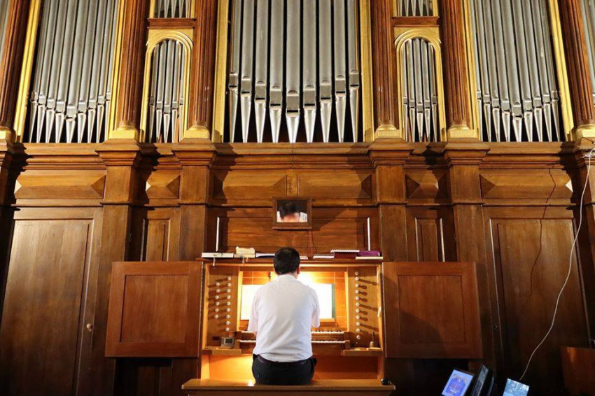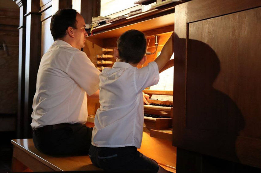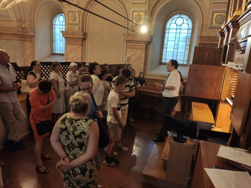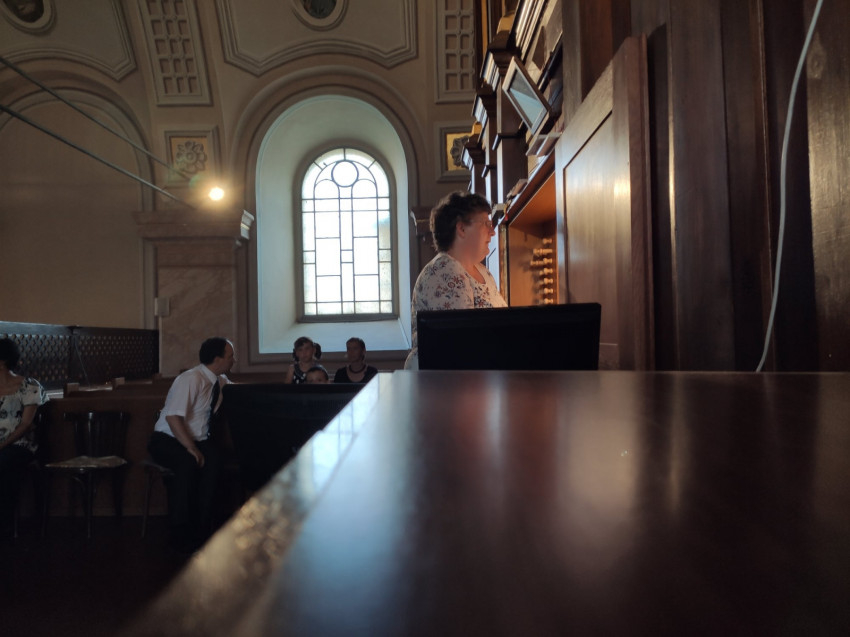A koncert után az érdeklődő közönségnek szemléltető, rögtönzött előadást tartott az orgonakarzaton, betekintést engedve az orgona működésébe és titkaiba.