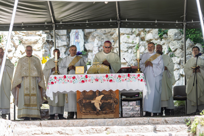 Délelőtt a zarándokok levonultak a lourdes-i barlanghoz, ahol Berta Tibor tábori püspök mutatott be szentmisét a katonai tábori lelkészség papjaival és diakónusai szolgálatával. Fúvós katonazenekar kísérte több szólamban a népénekeket most, és nem orgona.