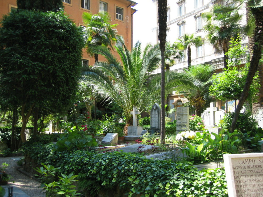 A 8. század végétől a Vatikán falain belül, a Szent Péter-bazilikától nem messze egy temetőt hoztak létre, ahol főként német nyelvű zarándokokat temettek el – ez a Campo Santo Teutonico. A német és flamand nyelvű temetőben sok „német-római” lelt végső nyughelyre. Bizonyos feltételek mellett ma is lehetséges ott temetkezni. A pálmafák árnyékában fekvő kis temető általában délelőttönként nyitva áll a látogatók előtt. (domradio.de)