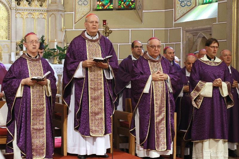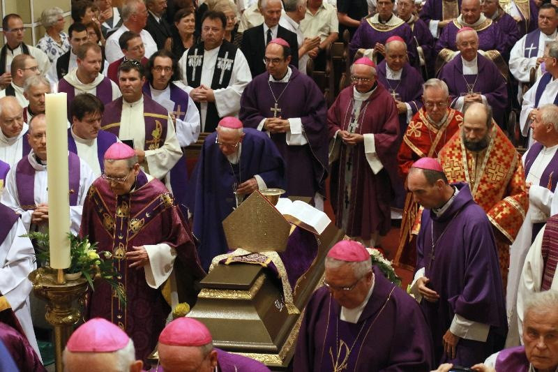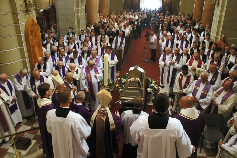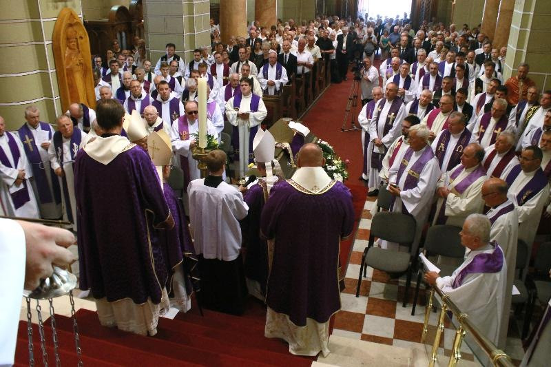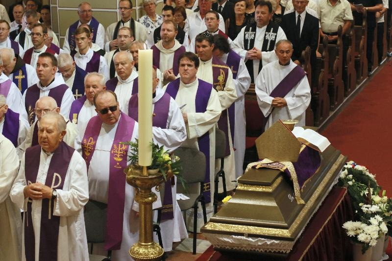 A főcelebráns Erdő Péter bíboros, prímás volt, aki a szentmisét együtt mutatta be a Szentszék képviselőjével, Alberto Bottari de Castello nunciussal, a Magyar Katolikus Püspöki Konferencia megjelent tagjaival és a jelen levő atyákkal, akik az ország egész területéről és a határokon túlról is érkeztek. A bazilika megtelt hívőkkel és tisztelőkkel, világi méltóságokkal, sokan kivetítőn követték végig a szertartást a ferences templomban. Testvérfelekezetek képviselői, közéleti szereplők, valamint társadalmi szervezetek vezetői egyaránt lerótták kegyeletüket az elhunyt főpásztor előtt.
