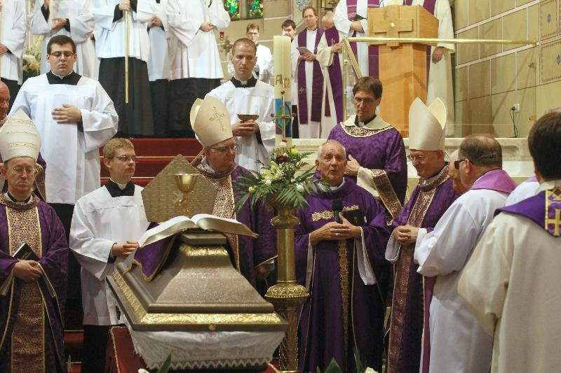 Szendi József püspököt a veszprémi bazilika kriptájában helyezték örök nyugalomra a szentmise végén.