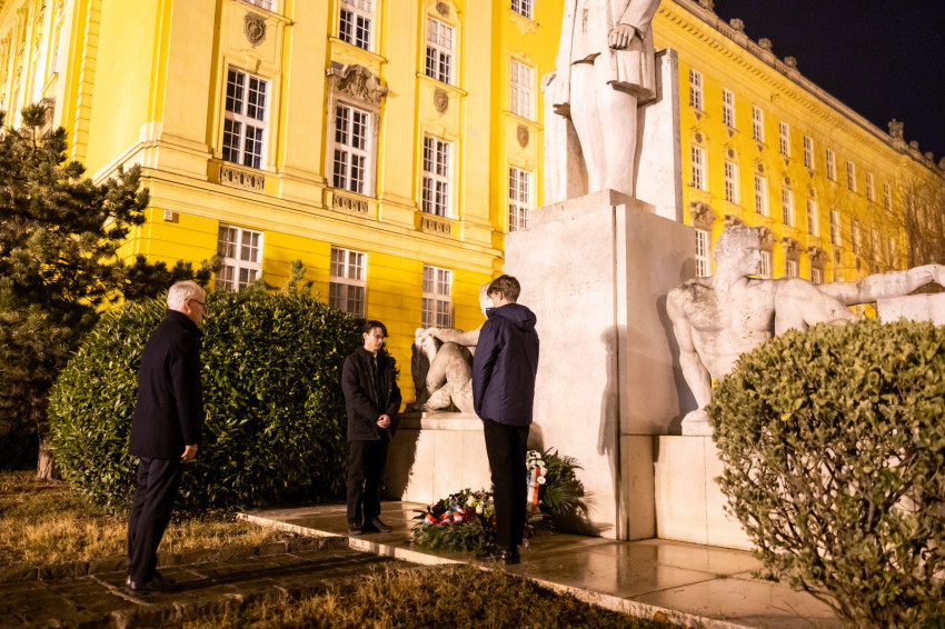 A megemlékezés után a résztvevők koszorút helyeztek el Klebelsberg Kunó szobránál, tiszteletük jeléül.