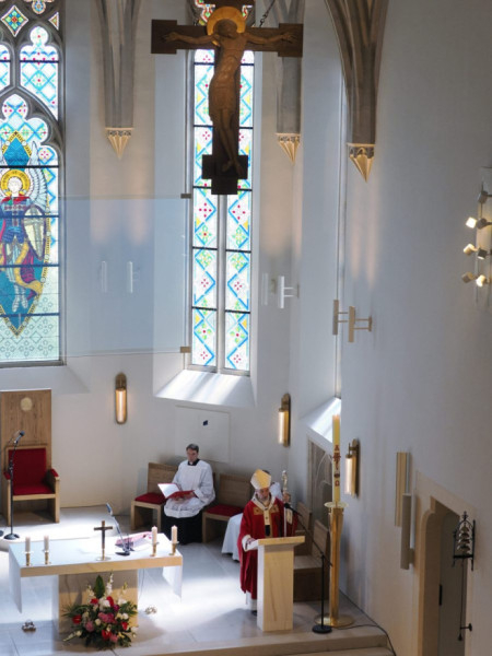 A főpásztor szentbeszédében kiemelte: pünkösd ünnepén egy csodának vagyunk részesei, és kimondjuk, hogy a Lélek erejében Jézus Krisztus az Úr, mert senki sem mondhatja ki ezt, csak az, akiben a Lélek lakozik. Lelkével akarunk élni, és ez számunkra erő, bátorság, értelem és tudás.