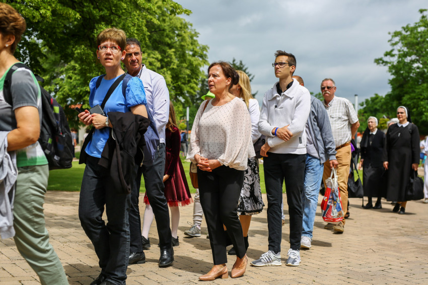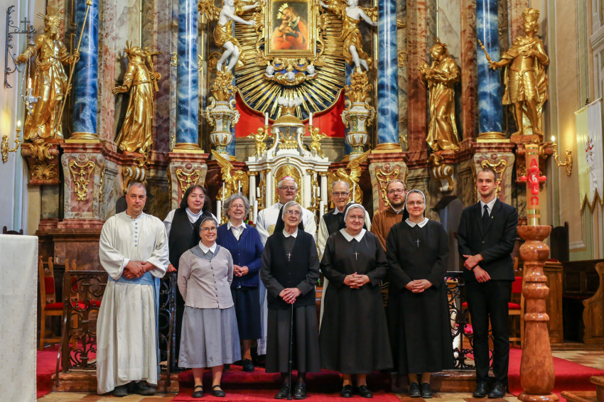 A zarándoklat zárásaként a kegytemplomban elimádkozták Spányi Antal vezetésével Jézus szíve litániáját, majd a szerzetesek a püspökkel közös képet készítettek.