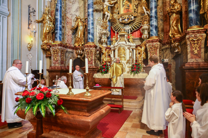 A Szentlélek-hívó ének után bevonult az egyházmegye papsága, vagy harminc Istennek szentelt életű férfi, majd felhangzott a kezdőének: „A jó pásztor táplálja juhait...”
