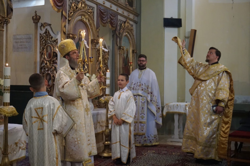 Az ünnepélyes bevonulás és a templomért végzett imádságok után vette kezdetét a Szent Liturgia.