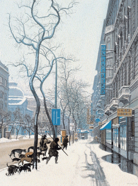 Aligha gondolhatnánk arra, hogy a pesti lapály egykori bérházában az állatok királyával találkozunk. Mácsai István ráérzett a XX. századi ember szorongásaira, amelyek a mi századunkban is jelen vannak. A 2005-ben elhunyt festő nem volt pszichológus, de vizuálisan remekül ki tudta fejezni a városi ember magányát, tudatalatti félelmeit. Most, amikor nincs háborús veszedelem a környéken, egy láthatatlan ellenséggel kell szembenéznünk több hónapja, és ez különös aktualitást ad ennek a képnek. Valamikor azért társultak az emberek, és azért költöztek városokba, hogy ne legyenek egyedül. Így biztonságosabbá és némileg olcsóbbá is vált az életük. Csakhogy a változó világban megfordultak a tendenciák. A vírus is könnyebben terjed a sűrűn lakott környezetben, ezért március közepén a városlakók közül sokan a vidéki nyaralójukban kerestek menedéket a megfertőződés elől.