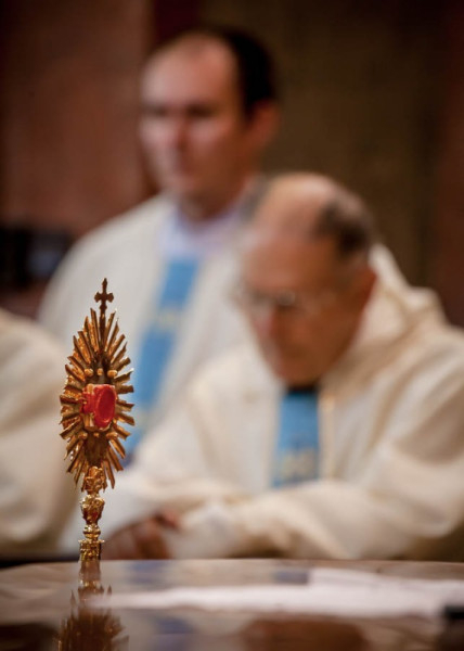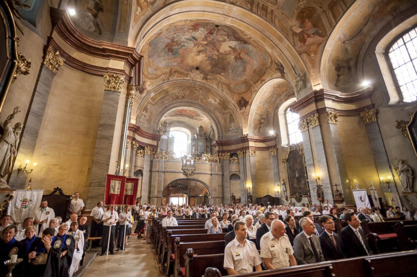 A körmenet után a Szent István-bazilikában ünnepélyesen elhelyezett magyar szent család ereklyéi előtt imádkozott a megyéspüspök az ünneplő közösséggel. Hálát adott azért, hogy első királyunk a keresztény hit útjára vezette népét. Mint államférfi, hadvezér, és mint családapa ezer év után is példa maradt az egész magyarságnak. A püspök hálát adott azért is, hogy Szent István halála előtt Szűz Mária oltalmába ajánlotta országunkat. Ezért maradhatott meg nemzetünk a történelem pusztító, viharos eseményei között.