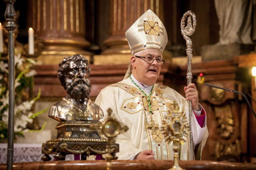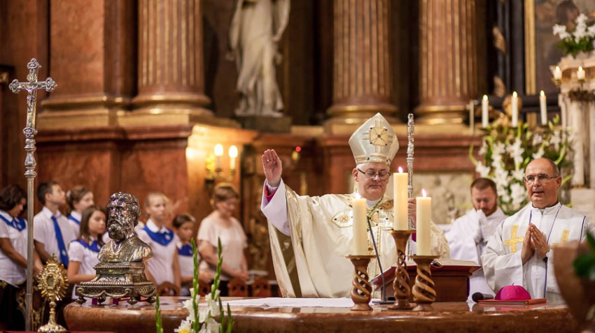 „A herceg halála után a rá váró szenvedésben, magányban és kilátástalanságban Szent István a lehető legtöbbet tette, nem lefelé, hanem fölfelé tekintett és a koronát a Magyarok Nagyasszonyának ajánlotta. Élete legjelentősebb gesztusa volt ez, amelyet sokan sokszor próbáltak elfeledtetni velünk, de ez az ország Mária országa maradt, amely a mai napig kihat nemzetünk életére” – mondta a főpásztor, majd hozzátette: „Aki megsejti, hogy mit jelent az öreg, megfáradt király felajánlása, az megérti, hogy sosem pillanatnyi erőkre, hatalmakra kell támaszkodni, hanem a hitre építve, Istenbe vetett bizalommal kell az életet irányítani a magánéletben és a közéletben is.”