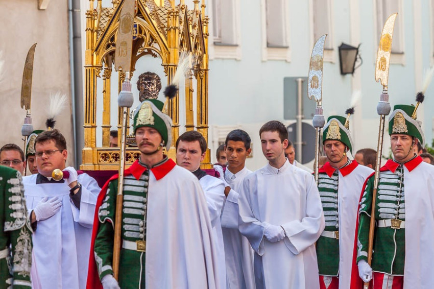 A székesfehérvári Szent Imre Általános Iskola diákjai és az egyházmegye papnövendékei körmenetben vállukra véve vitték át a székesfehérvári püspökségről a székesegyházba Szent István hermáját, Boldog Gizella és Szent Imre ereklyéit.