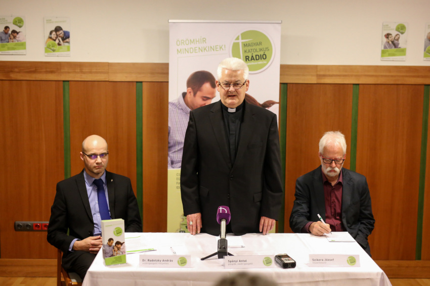 Radetzky András vezérigazgató-helyettes köszöntötte a sajtó képviselőit, majd Spányi Antal székesfehérvári megyéspüspök, az MKR vezérigazgatója beszélt a rádió küldetéséről és az elmúlt másfél évtizedről.
