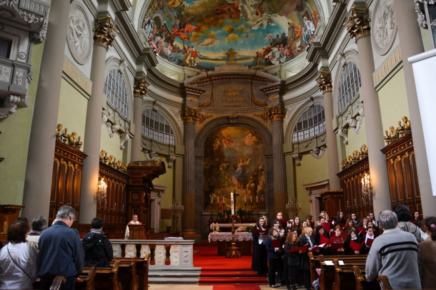 A konferencia záró szentmiséjén a főiskola énekkara Köncse Kriszta és Kemény Kinga tanárnők vezetésével húsvéti gregorián misét énekelt, valamint a húsvét ünnepéhez kapcsolódó barokk és romantikus motettákat adott elő.