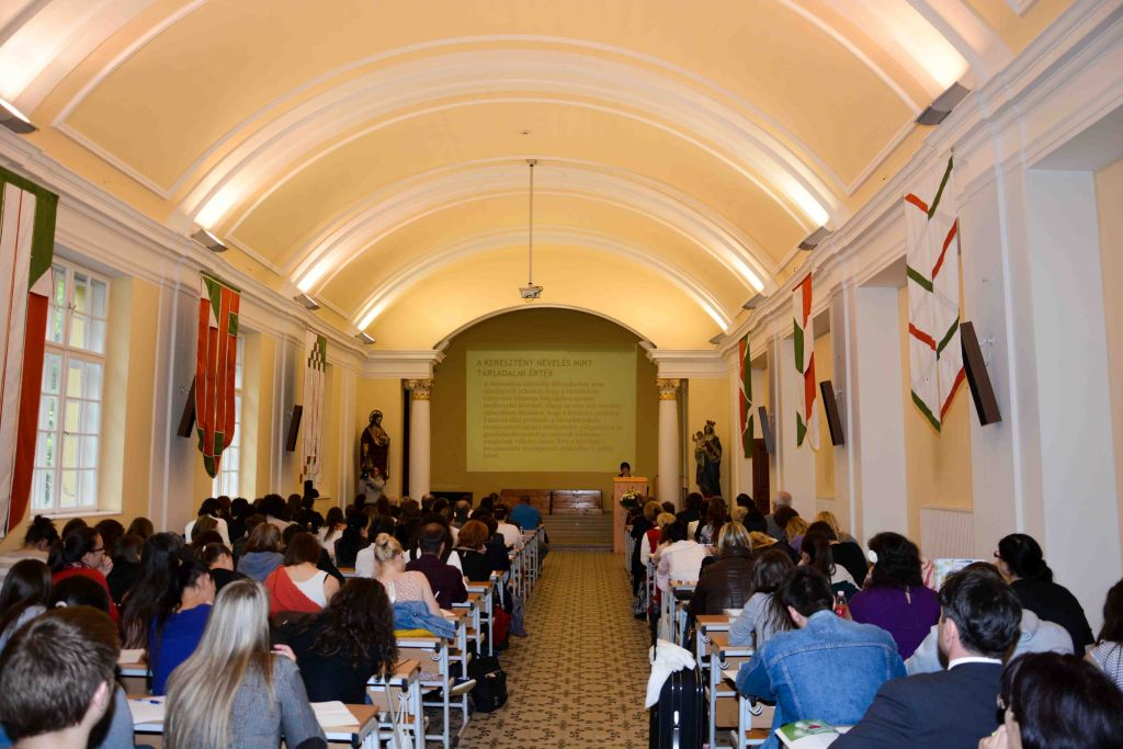 A keresztény nevelés mint társadalmi érték című előadásában Fülöpné Erdő Mária rektor, főiskolai tanár kiemelte, hogy a modern társadalmak értékrendjében és elvárásaiban megjelenik a pluralizmus, a kulturális és értékrendi sokszínűség, azonban nem szabad elfelejtenünk, hogy létezik objektív igazság, amelynek felmutatása a keresztény nevelés fontos feladata. A keresztény pedagógia küldetése, hogy a neveléssel foglalkozók személyes életpéldáján keresztül tartsa ébren az egyénekben és ezen keresztül a társadalomban a hit, a remény és az áldozatkész szeretet kultúráját. A keresztény szellemiségű pedagógia elmélete és gyakorlata hívő, reményteli, stabil, áldozatkész, elkötelezett ember nevelésére irányul. E folyamatban nagy szerepe van a családoknak valamint az egyre kiterjedtebb keresztény köznevelési intézményrendszernek és felsőoktatásnak is. Lényeges a keresztény nevelés megvalósításához gyakorlati segítséget és módszertani támaszt nyújtani. Erre hivatottak a keresztény felsőoktatási és közoktatási pedagógiai műhelyek, melyek együtt gondolkodására, együttes tevékenységére is szükség van.