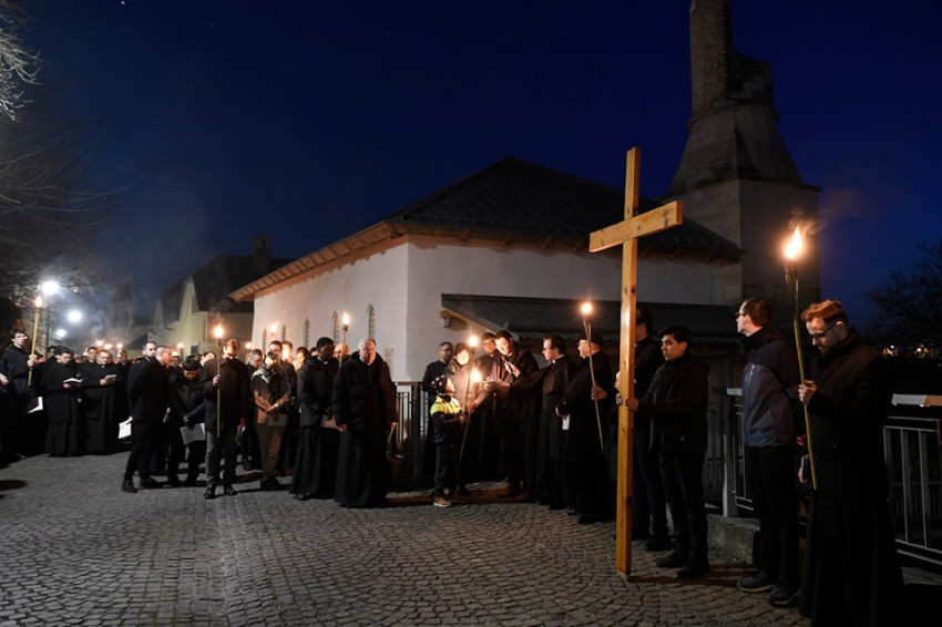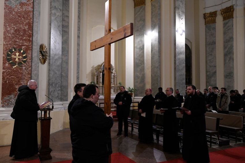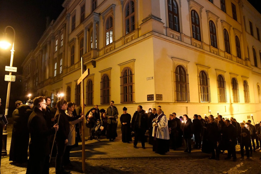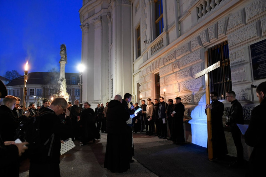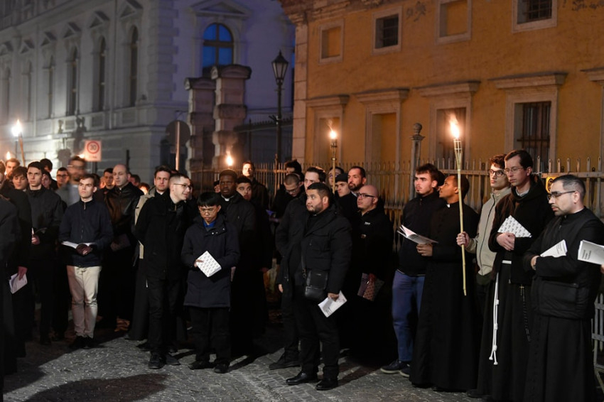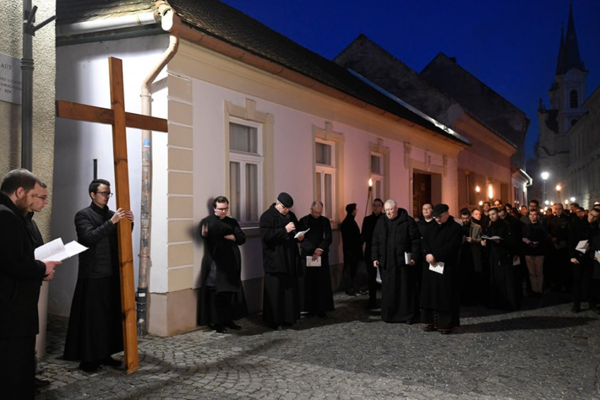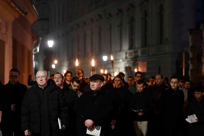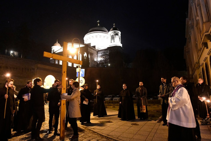 Az esemény előestéjén keresztutat jártak a papnövendékek Esztergomban.