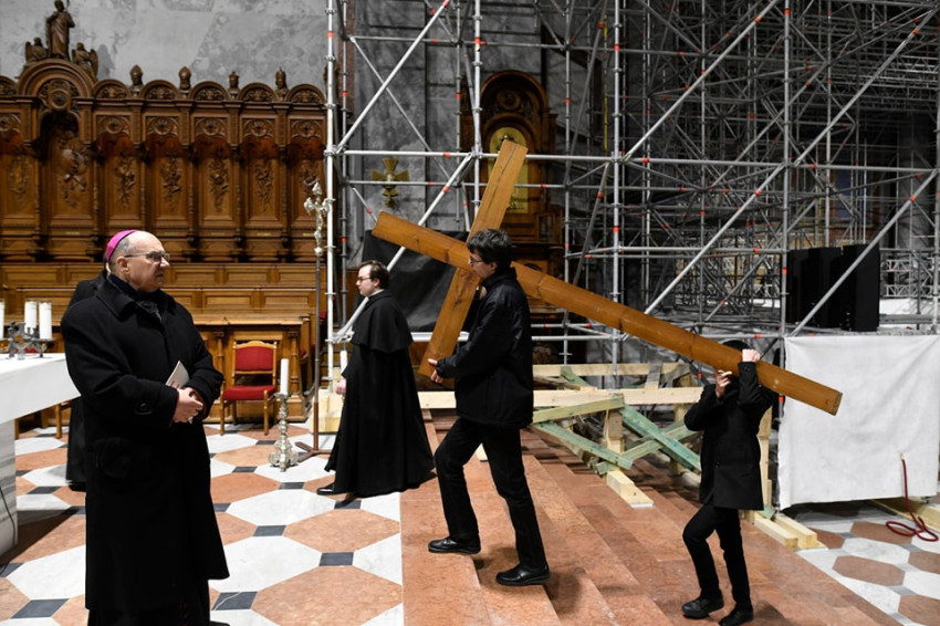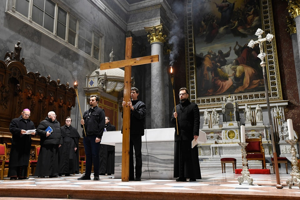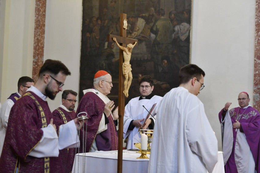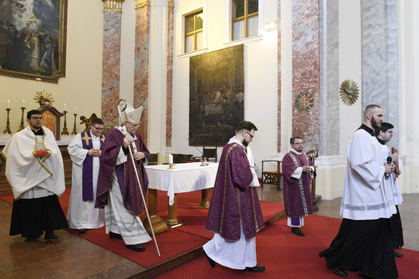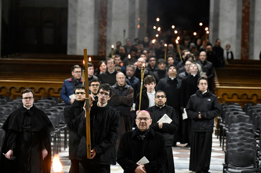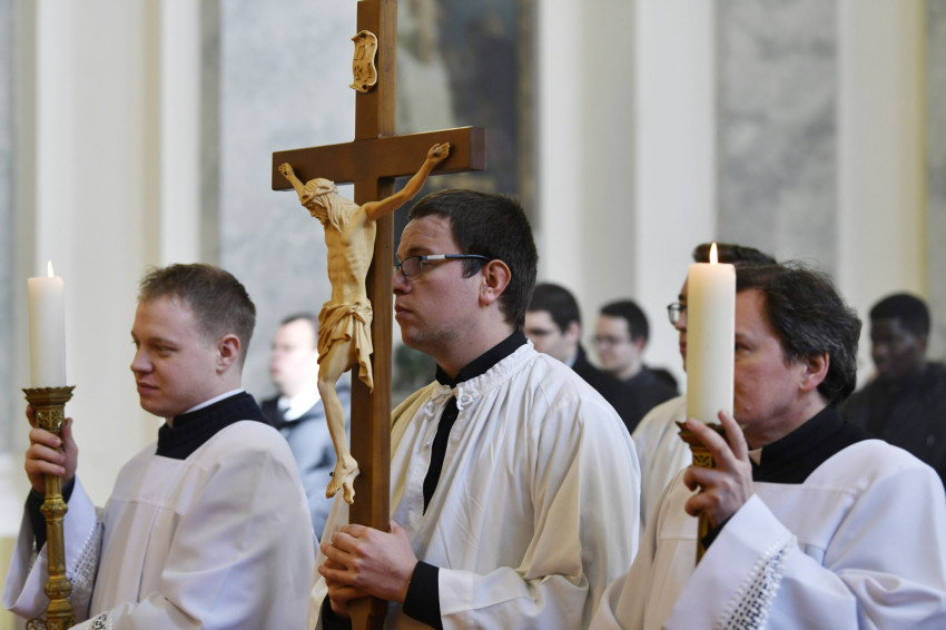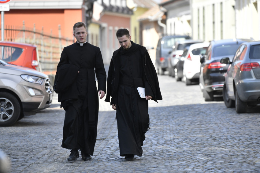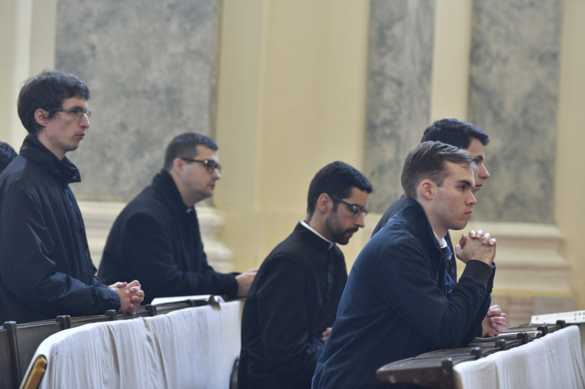 Az esemény előestéjén keresztutat jártak a papnövendékek Esztergomban.