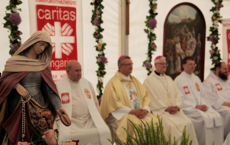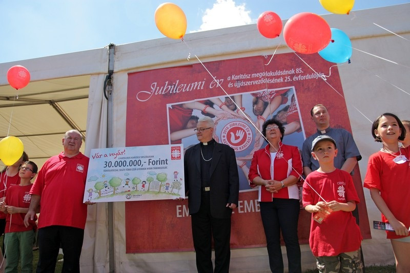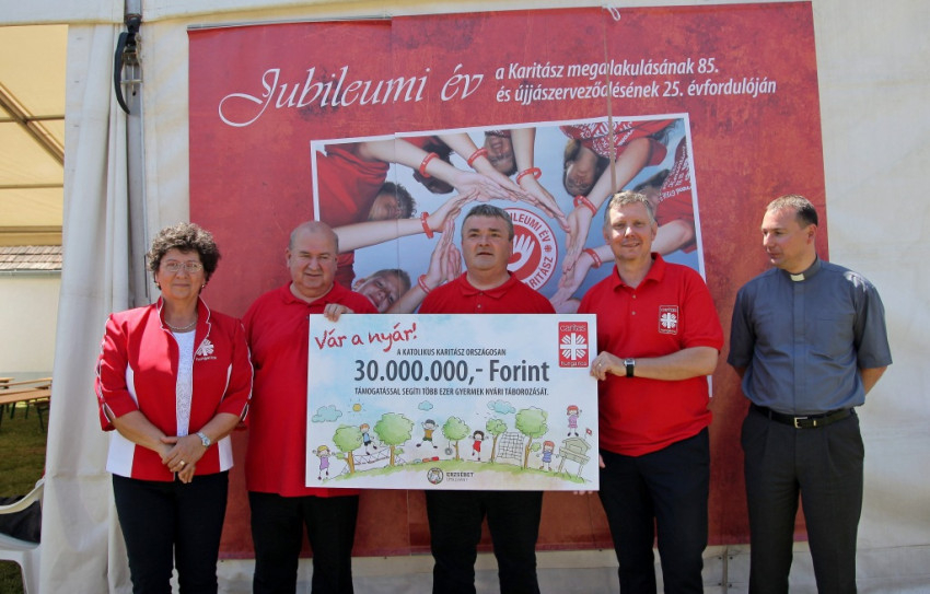 A szentmise után Spányi Antal püspök és Écsy Gábor, a Karitász országos igazgatója átadta a segélyszervezet jelen lévő egyházmegyei vezetőinek azt a 30 millió forintot jelképező utalványt, amelyet a következő hetekben a nyári táborokra fordítanak a csoportok.