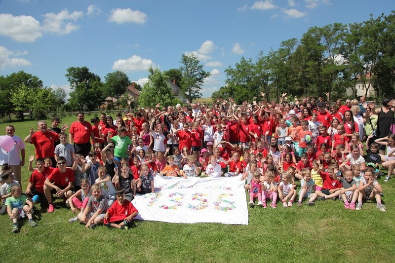 Végül – már a játékos programok keretében – sok színes kézlenyomattal is kirajzolták a gyerekek az adományvonal számát. A nap további részét légvárakban ugrálással, élő csocsóval, pingpongozással, kézműves-foglalkozással töltötték a gyermekek.