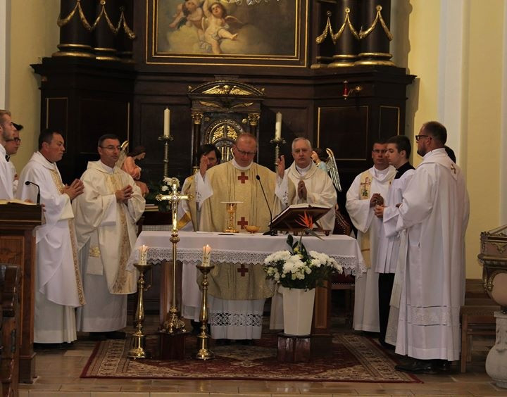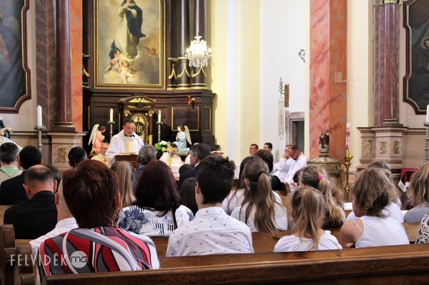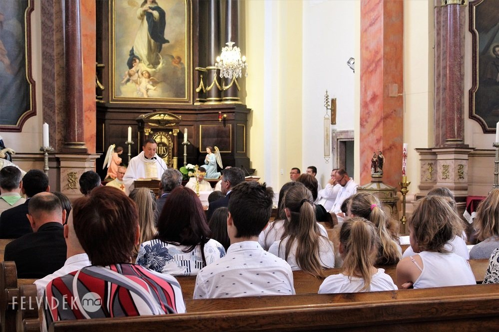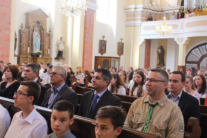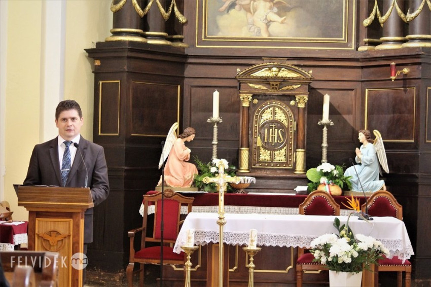 Az ünnepség szentmisével kezdődött, amelynek főcelebránsa Parák József besztercebányai püspöki helynök volt, akivel együtt misézett Kiss Róbert nagyszombati püspöki helynök, Hlédik László ipolysági plébános és az egyes iskolák iskolalelkészei. Az ünnepi szentbeszédet Mahulányi József nagymegyeri esperes-plébános mondta.