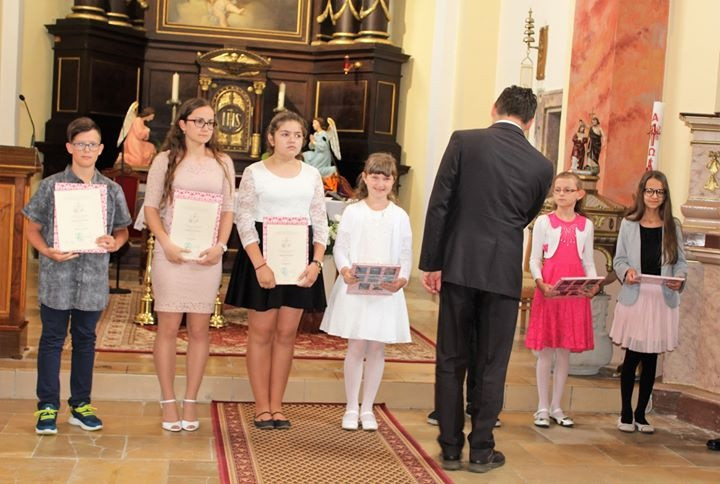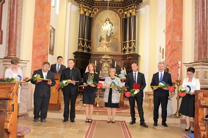 A szentmise után Pálffy Dezső, az ipolysági Fegyverneki Ferenc Közös Igazgatású Katolikus Iskola igazgatója köszöntötte az egybegyűlteket, méltatva a katolikus oktatás és nevelés fontosságát és aktualitását, majd Madarász Róbert, a komáromi Marianum Egyházi Iskolaközpont igazgatója, a Patrona Nostra közhasznú társaság elnöke átadta a Közösségünk Szolgálata díj idei pedagógus kitüntetettjeinek az emlékplaketteket és a diákoknak az emlékokleveleket.