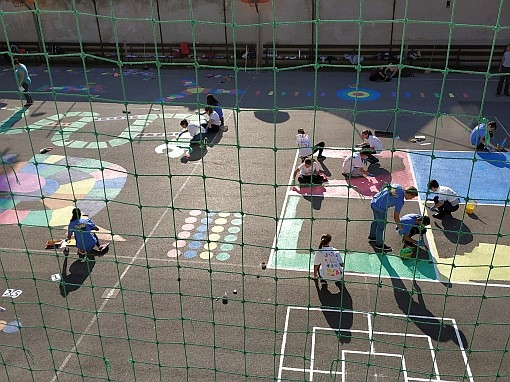 A kiskunmajsai Szent Gellért Katolikus Általános Iskola pedagógusai régóta tervezgették, hogy szabadtéri társasjátékok tábláival vidítják fel az intézmény beton futballpályáját. Október 13-án több gyermek és fiatal festette fel a különféle játéktáblákat a futballpályára.