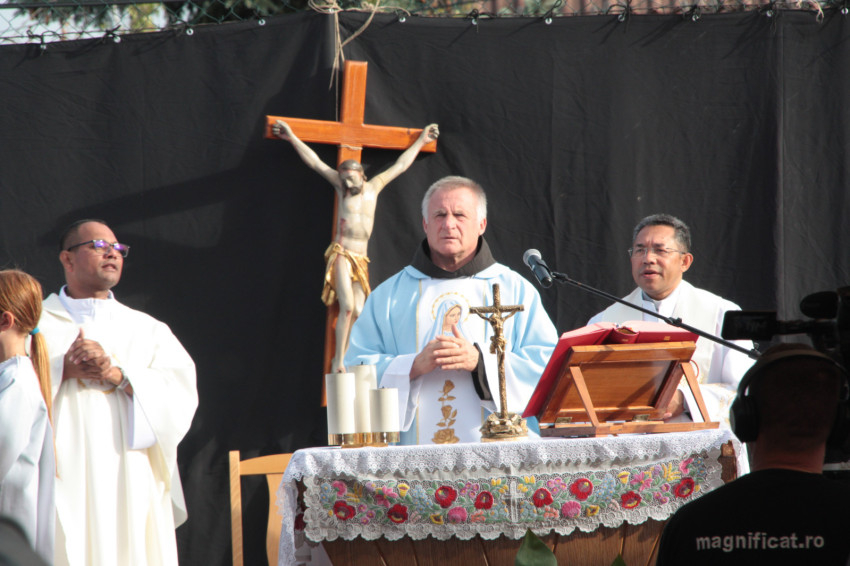 A nap csúcspontjára, a szentmisére összejöttek körülbelül hatszázan, hogy közösen dicsőítsék az Úr Jézust. Böjte Csaba testvér a prédikációban buzdította a híveket, hogy legyenek Máriás lelkületűek, kövessék a Szűzanya példáját.