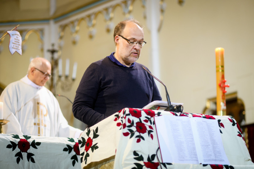 Az evangélium Szent János könyvéből hangzott el, a szőlőtőről és a szőlővesszőkről szóló példabeszéd (15,1–8). Nagy Károly emlékeztetett rá: először a választott nép körében hirdették az evangéliumot az apostolok, majd mentek tovább, Jézus felszólítását teljesítve: „Menjetek az egész világra, tegyetek tanítványommá minden népet és kereszteljétek meg őket…” Így aztán az apostolok a pogányoknak is hirdették az örömhírt.