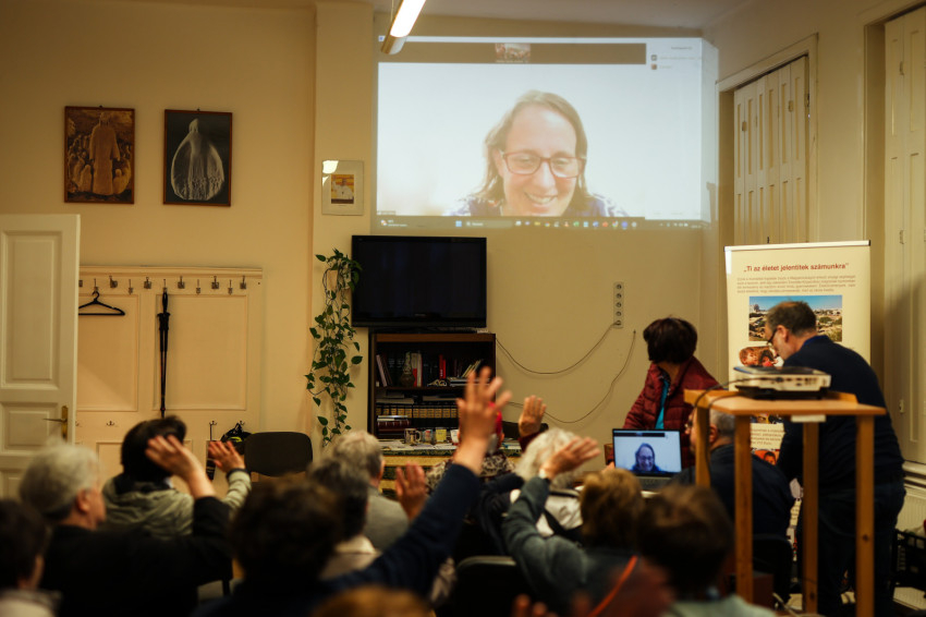 A szentmise után a jelenlévők Nagy Károly plébános vezetésével átvonultak a plébánia közösségi termébe, ahol Tóth Pál – Tóth Judit férje – online beszélgetett egy német fokolarinával, Juliával, aki tavaly augusztusban került Pakisztánba és vette át a szociális központ vezetését. Elmondta: nagyon hálás Istennek, hogy oda vezette őt, és ezt a szolgálatot végezheti. „Lenyűgöző élmény” ebben a központban dolgozni – fogalmazott. – Sok a probléma, de a kegyelem is.
