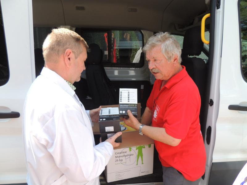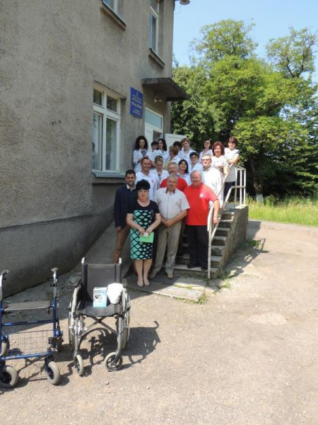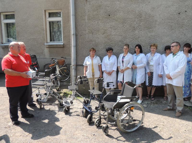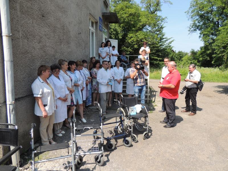 Az orvosi és gyógyászati segédeszközöket Écsy Gábor, a Katolikus Karitász országos igazgatója és Vojcek László professzor, az Orvosmisszió vezetője adta át Jaroszláv Hajovics polgármesternek.