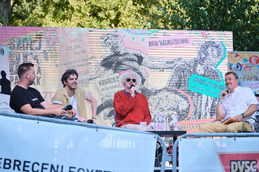 Az utolsó nézői kérdés a hit személyes felvállalására vonatkozott. Dánielfy Gergő úgy gondolja, hogy inkább a dalszövegeiben teszi ezt meg, Müller Péter Sziámi pedig végszóként arra hívott mindenkit, hogy rajongjunk együtt Istenért.